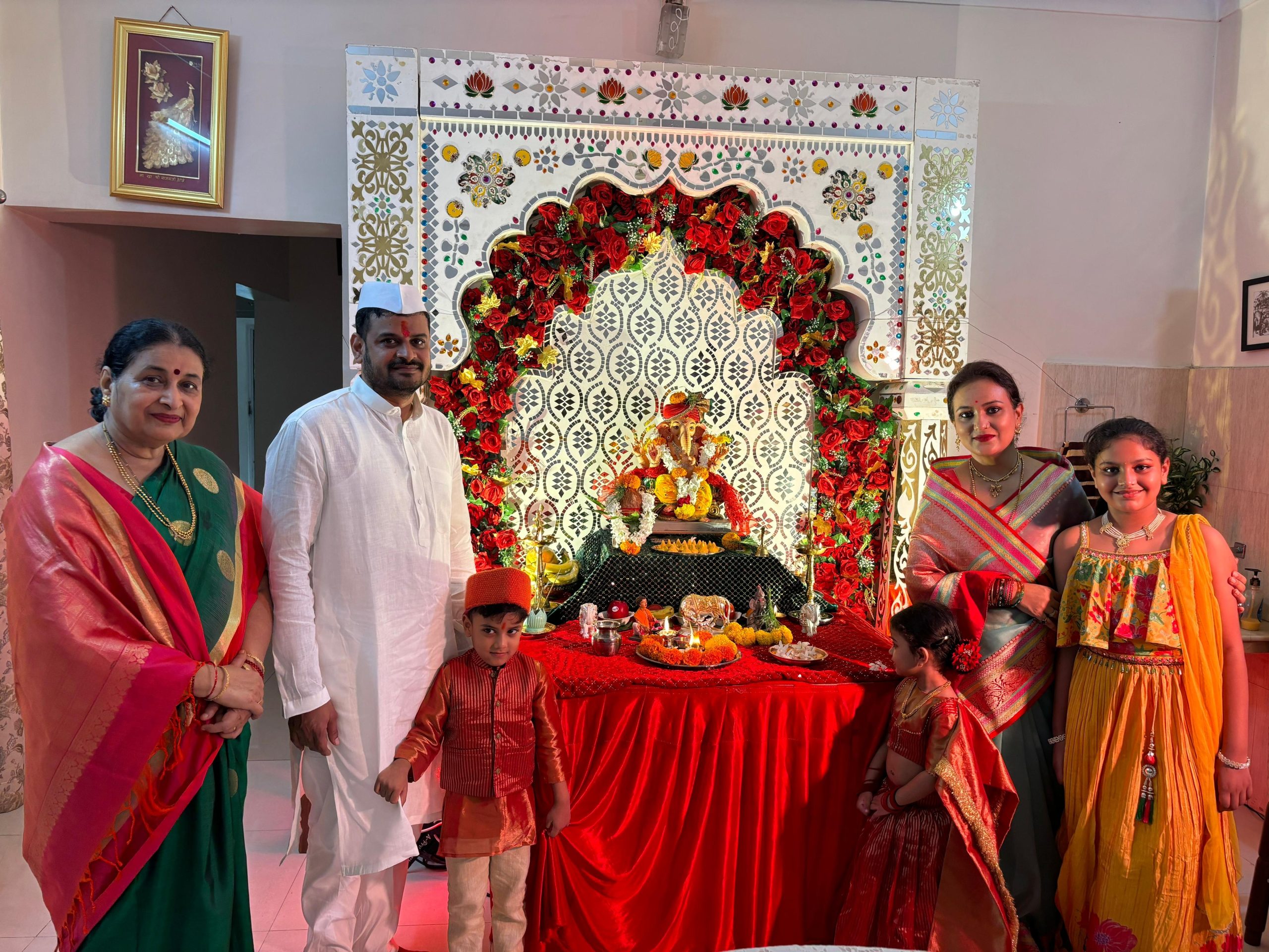 अकोला : अकोला जिल्ह्यातील समस्त नागरिकांनी च्या जीवनामध्ये समृद्धी येऊन बुद्धी आणि विकासाचा संकल्प घेऊन जनता जनार्दनाला चांगला सुविधा प्राप्त करून देण्याचा संकल्प घेऊन गणराया यासाठी सहकार्य करावे अशी प्रार्थना सौभाग्यवती सुवासिनीताई संजय धोत्रे यांनी केले. माजी केंद्रीय मंत्री संजय भाऊ धोत्रे तसेच खासदार अनुप धोत्रे यांच्या निवासस्थानी रणपिसे नगर येथे गणरायाच्या स्थापनेच्या वेळी त्यांनी प्रार्थना केली. गेल्या गेल्या 40 वर्षापासून सांडू मातीचा गणपती आपल्या निवासस्थानी स्थापना करून सातत्याने पर्यावरणाच्या सोबत मानवता तसेच प्रत्येकाच्या सुखदुःखात सहभागी होण्याची परंपरा कायम ठेवण्याची धोत्रे परिवाराची याला वृद्धिगत करण्याची प्रार्थना गणरायाला करून खासदार अनुप धोत्रे यांनी येत्या वर्षामध्ये अकोलेकरांच्या व लोकसभा मतदारसंघातील जनतेच्या अशा आकांक्षा पूर्ण होण्यासाठी राज्य शासन आणि केंद्र सरकारकडे यश पाठपुरावायला यश मिळो अशी प्रार्थना केली. सौ.सुहासिनीताई धोत्रे,श्री.अनुप संजय धोत्रे,सौ.समीक्षाताई अनुप धोत्रे, कुमारी यशिका धोत्रे रणविजय धोत्रे कुमारी राजनंदनी धोत्रे,स्वीय सहाय्यक प्रदीप नंदापुरे, मोहन पारधी, ,.ऋषिकेश देवर,संदीप बोचरे, सविन महले, अजय लाडे, आदेश आटोटे,प्रवीण वहिले,केदार काकडे,वआदी कार्यकर्ते उपस्थित होते.